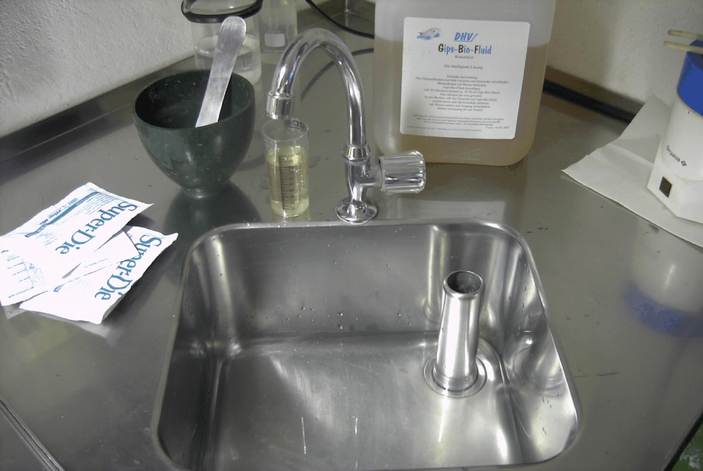 Intelligente Lösungen über eine Tropfzugabe mit einer elektronischen Dosierpumpensteuerung mit Auslösung über den Gipstrimmer sind dauerhafte Ideallösungen mit höchster Effizienz in Bezug auf Kosten - Nutzen. Als Beispiel können wir hier darstellen das auf ca. 600Kg Gipseinkauf ein 10L Gips Bio Fluid ausreicht, nebst der Ersparnis an Pflegeaufwand - Gipstrimmer - Spülbecken und nachfolgender Abscheider - da keinerlei Abbindereaktionen. die bekannterweise auch Wärme erzeugen auftreten, sind Geruchsbelästigungen fast nicht wahrnehmbar. Diese Lösung beinhaltet natürlich eine entsprechende Investition.